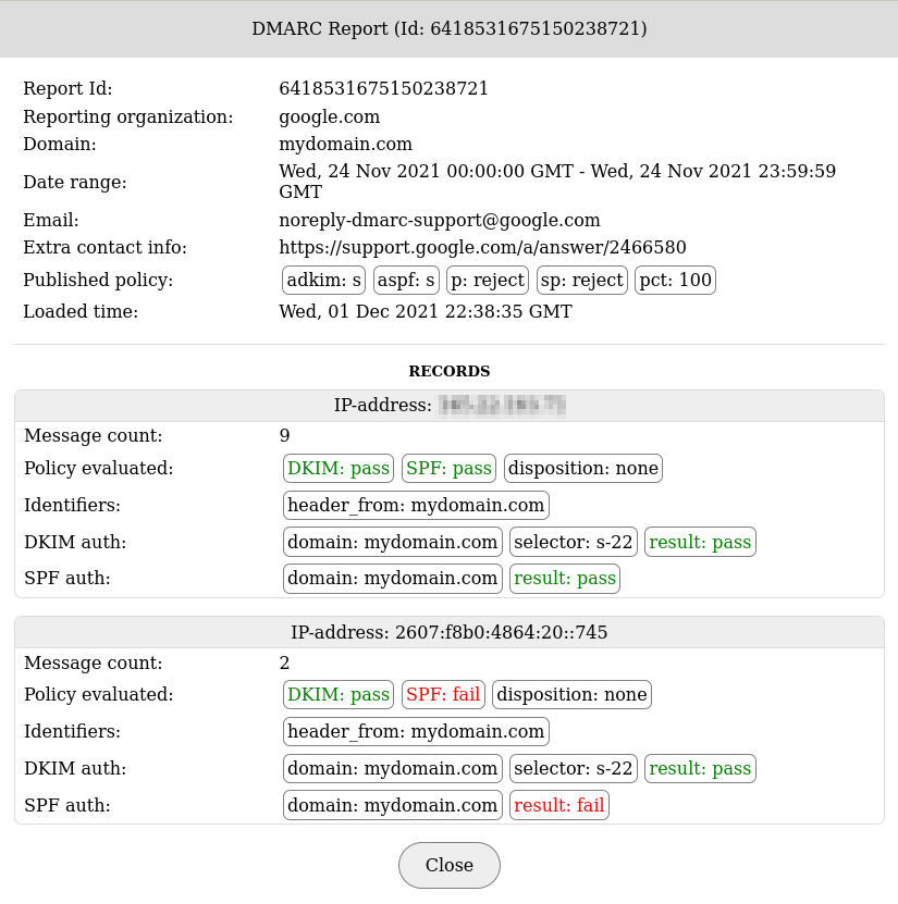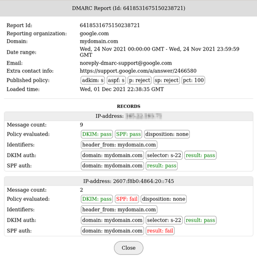 DMARC report analysis